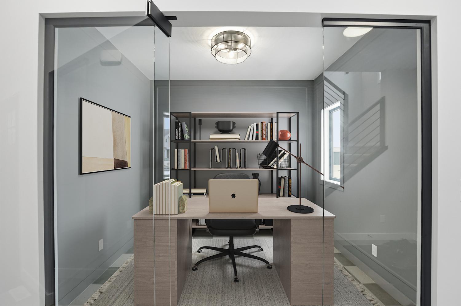 Entering the home from the insulated and boarded garage, you step into the mud room area, with bench and locker area for a quick disposal of outerwear. The mudroom is conveniently attached to the walk through pantry containing Tafisa shelving and brackets for ample storage of your groceries. This home also features a spice kitchen in the pantry with a sink, window and a lower bank of cabinets. This area is great for a coffee bar and extra prep area. Entering the kitchen, you will find beautiful cabinets to ceiling including an oversized island, undermount lighting, backsplash tile and quartz countertops. The great room features large windows, and oversize patio door for an abundance of natural light, and the fireplace is a stunning focal point in the room. The addition of the flex/office area adjacent to the front entrance is a perfect work from home space.